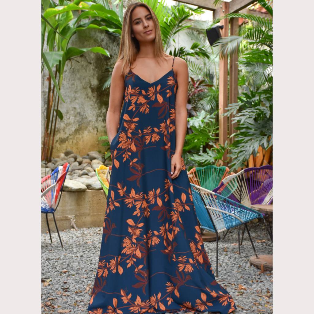Maxi Vestido de horma suelta, tiene bolsillos que lo hacen el vestido mas comodo del mundo, ademas de super versatil.