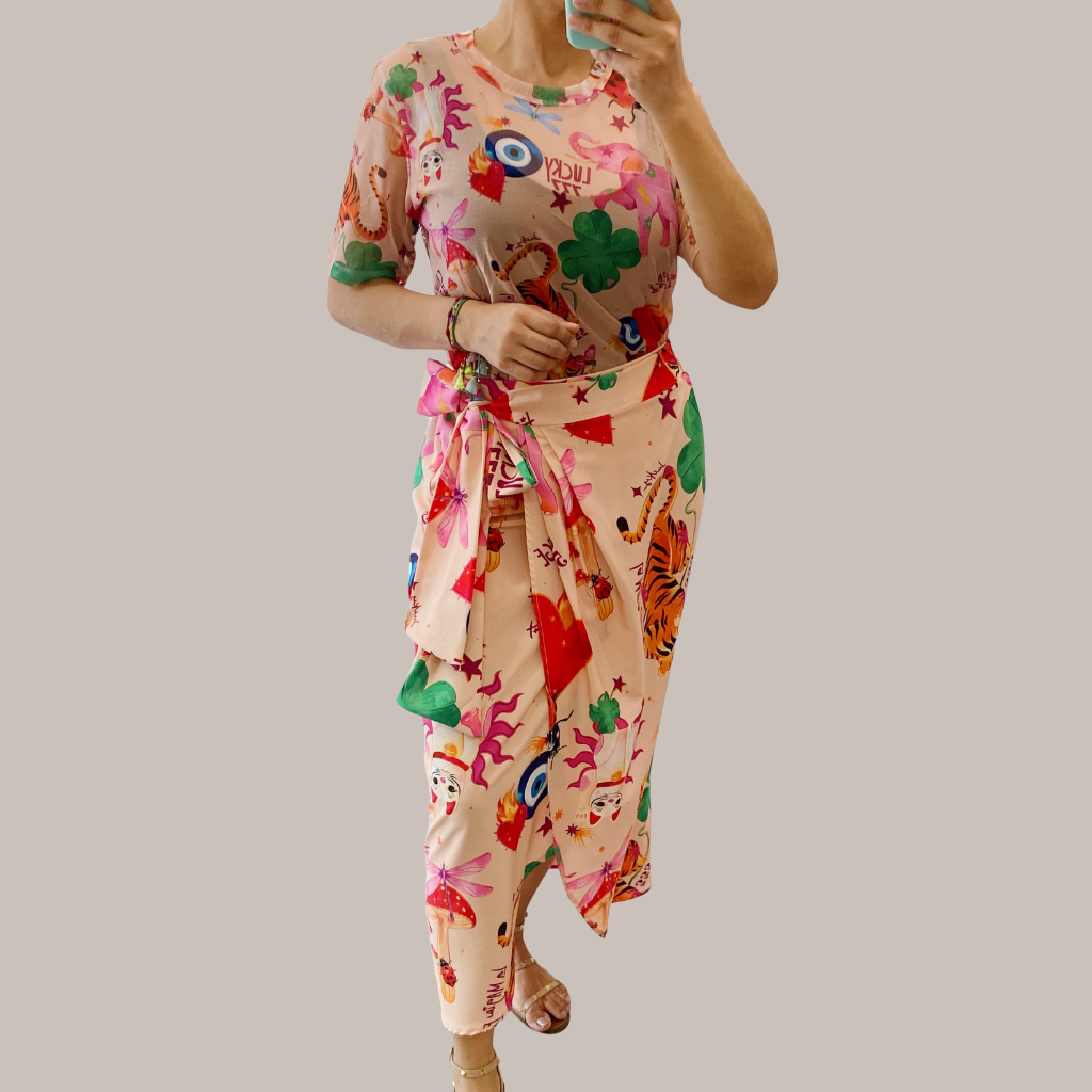 Compuesto por nuestra falda Eloisa + Blusa Mesh